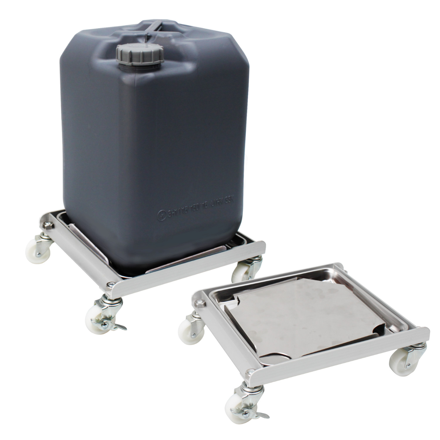 ● 商品名:缶けいしゃ SUS304製 角型ポリ缶用 ステンレス 液もれ防止トレー付 ごくかるキャリー