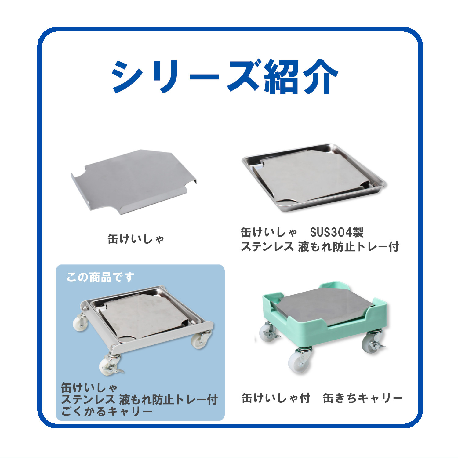 ● 材質:【缶けいしゃ】SUS304【液もれ防止トレー】SUS430【ごくかるキャリー】アルミ(アルマイト加工済)